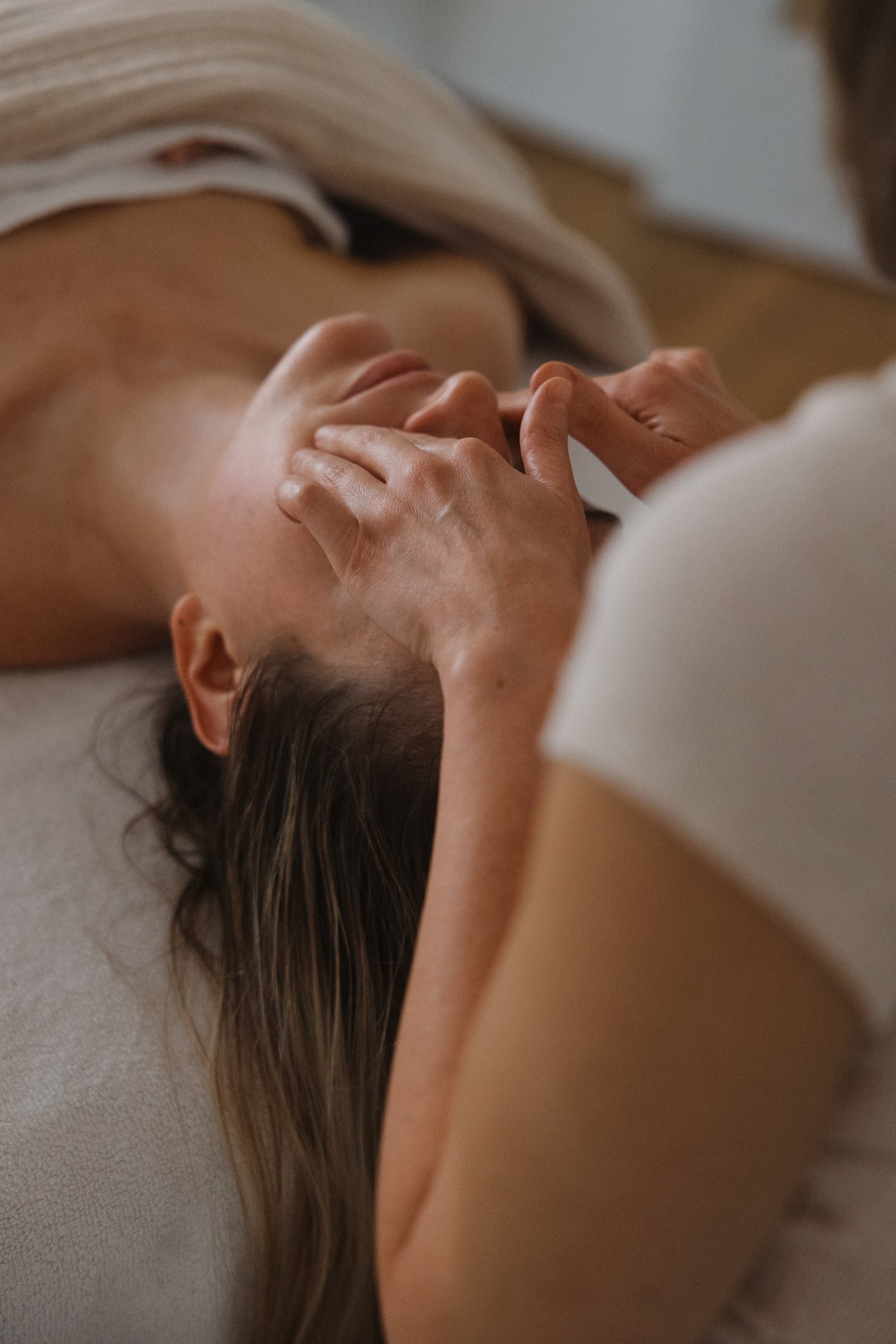 The experience is deeply calming—melting physical and emotional holding to reveal a face that feels lighter, open, and at ease.